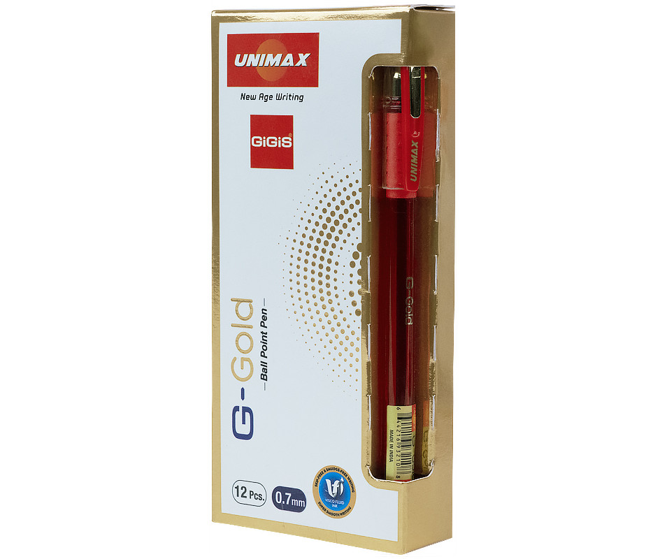 "Unimax" FINE POINT GOLD DLX ballpoint pen in an elegant body. With a rubberized area for a more comfortable grip. Ventilated cap with a metal element on the clip. The color of the case corresponds to the color of the ink.