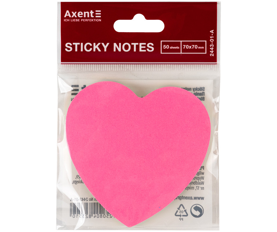 Блок для нотаток, 70х70мм, клейкий папір, 50 аркушів, канцтовари для офісу, нотатки з малюнком, блокнот з клейким шаром, канцелярія недорого, блок паперу серце, канцтовари для школи, доставлення по Україні.
