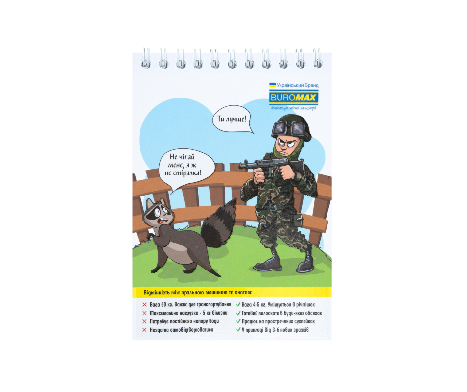 Завдяки практичному дизайну та високій якості матеріалів, блокнот на пружині зверху PATRIOT "COMBAT ANIMALS" є ідеальним вибором для всіх, хто прагне поєднати естетику з функціональністю. Це не просто записник, а справжній витвір мистецтва, який надихає на творчість і нові ідеї.