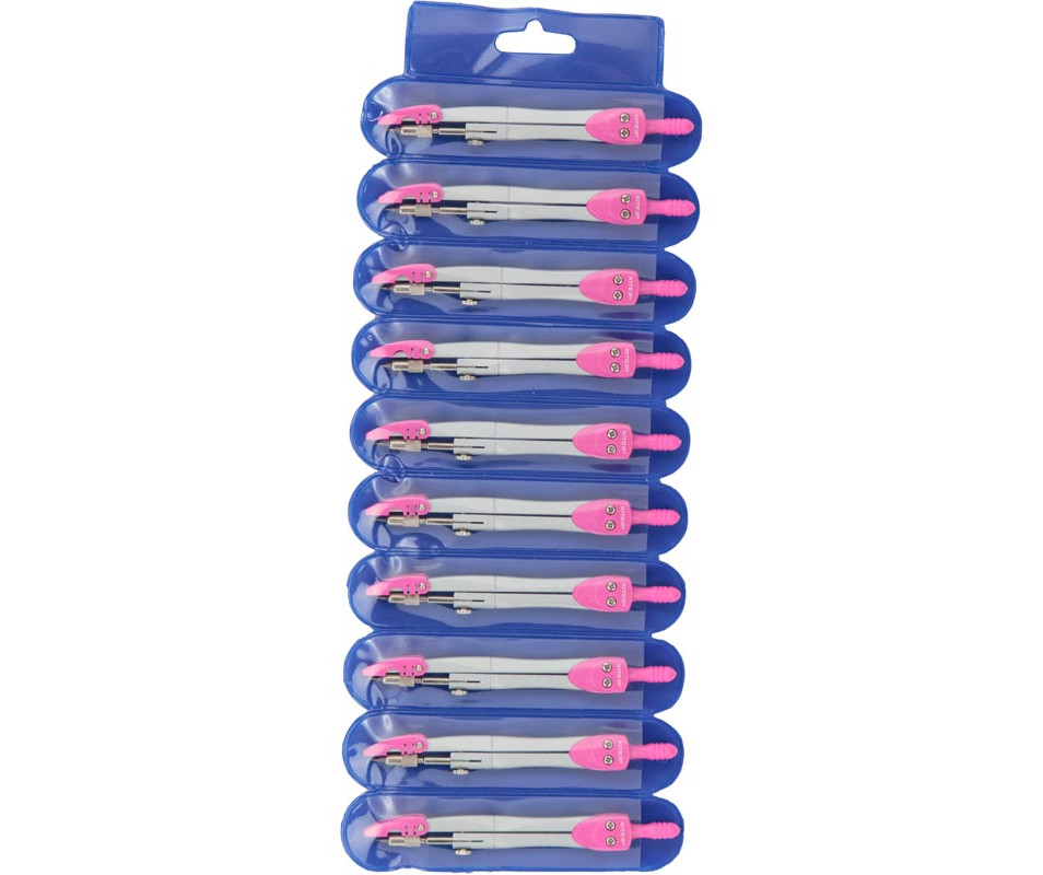 Compass in PVC case pink, 125 mm 6455. Metal compass Kite K18-382-10 presented in PVC case. The product is intended for drawing circles and circle arcs, it can also be used to measure distances, in particular, on maps. Also, used in geometry, drawing, for navigation or creating a correct geometric pattern.