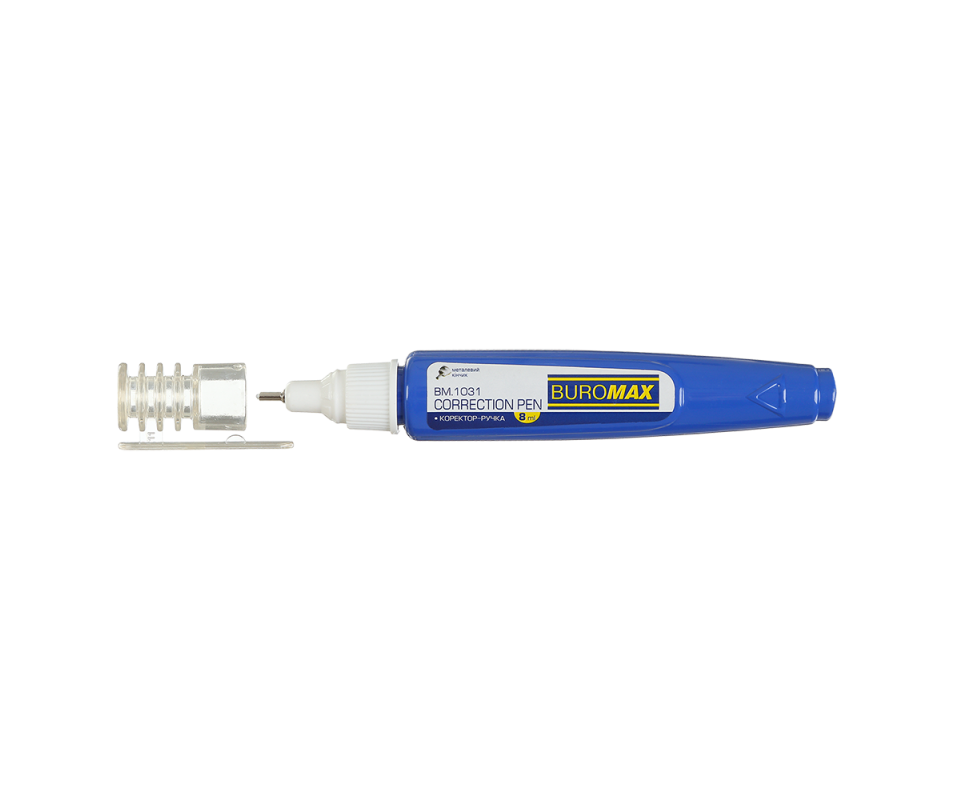 Corrector-pen 8 ml of BM.1031 JOBMAX from ECONOMY is suitable even for small and targeted fixes! Convenient, simple and safe to use quick-drying liquid has a high correction capacity. Plastic body with metal tip and dispenser for precise application of the corrector. The dispenser regulates the feed rate of the correction fluid and prevent it from drying. Correction fluid, oil-based – fast drying on paper and in the bottle as long as possible dries and remains suitable for use, the shelf life is 24 months. A metal ball of shaking inside the case. Plastic cap with clip.