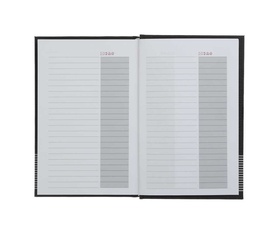 The PARALLEL A6 undated diary has an elegant black color, which gives it a versatile look. Its compact size makes it the perfect companion for daily notes, planning or creative writing. The structure of the diary allows the user to freely organize their thoughts without being tied to specific dates, which simplifies the process of keeping records.