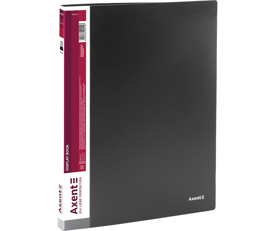 Дисплей-книга 20 файлів, чорна 1015. Дисплей-книги - це чудове рішення для роботи, навчання і організації особистих архівів, підбірок. Помістивши документи з певної теми або проекту в окрему дисплей-книгу, можна не тільки вирішити питання зручної систематизації та зберігання документів, але і при необхідності брати з собою і презентувати їх, просто гортаючи файли в дисплей-книзі. Не потрібно окремо купувати файли і папки, досить вибрати дисплей-книгу з оптимальною кількістю файлів. Дисплей-книги Axent виготовлені з первинного поліпропілену, щільність пластику обкладинки і файлів передбачає їх зносостійкість і збереження презентабельного вигляду в процесі використання. Файли надійно впаяні в обкладинку. Колір обкладинки збігається з корінцем, завдяки чому дисплей-книги відрізняються на полиці, легко знайти потрібну за кольором корінця.