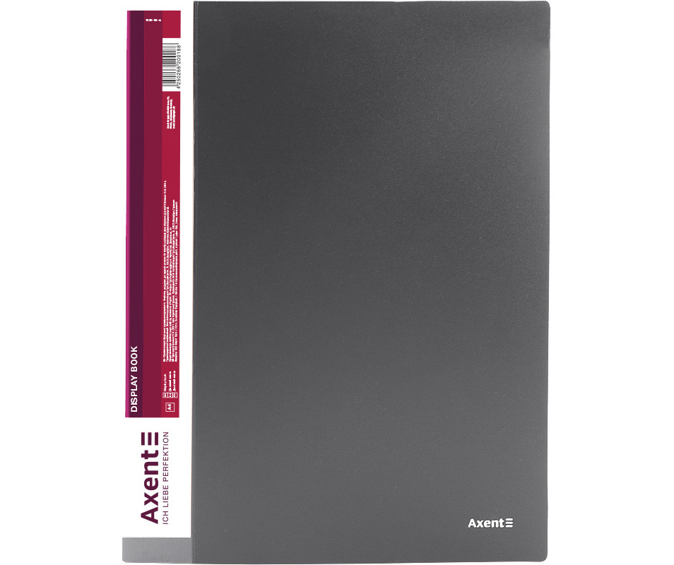 Дисплей-книга 20 файлів, сіра 1013. Дисплей-книги - це чудове рішення для роботи, навчання і організації особистих архівів, підбірок. Помістивши документи з певної теми або проекту в окрему дисплей-книгу, можна не тільки вирішити питання зручної систематизації та зберігання документів, але і при необхідності брати з собою і презентувати їх, просто гортаючи файли в дисплей-книзі. Не потрібно окремо купувати файли і папки, досить вибрати дисплей-книгу з оптимальною кількістю файлів. Дисплей-книги Axent виготовлені з первинного поліпропілену, щільність пластику обкладинки і файлів передбачає їх зносостійкість і збереження презентабельного вигляду в процесі використання. Файли надійно впаяні в обкладинку. Колір обкладинки збігається з корінцем, завдяки чому дисплей-книги відрізняються на полиці, легко знайти потрібну за кольором корінця.