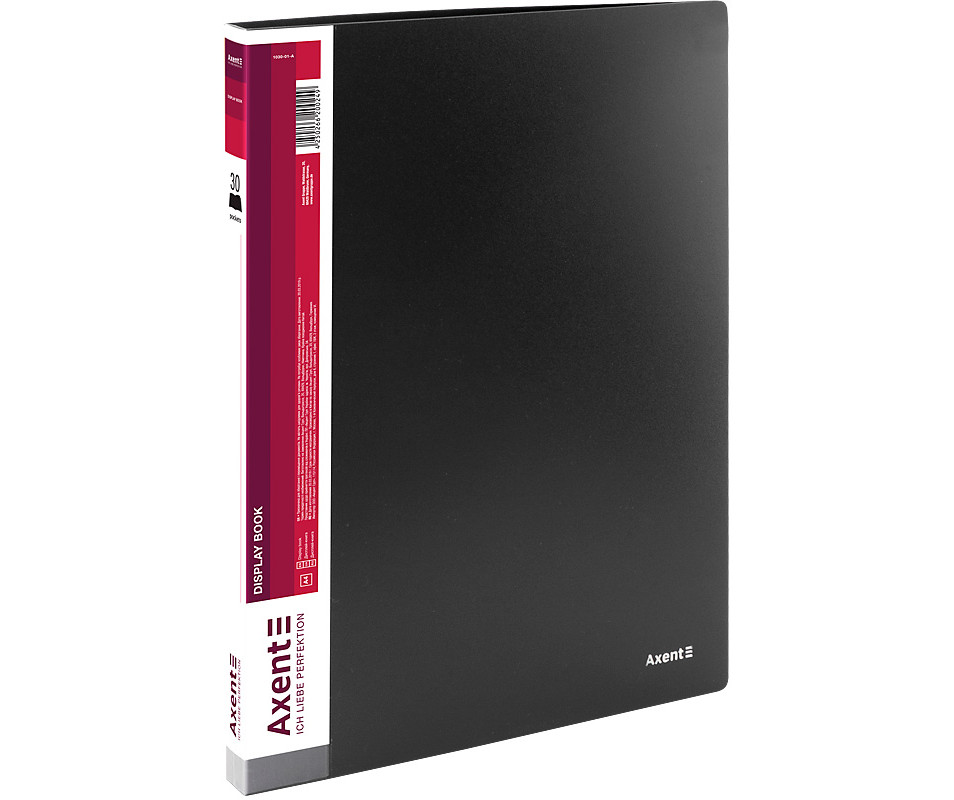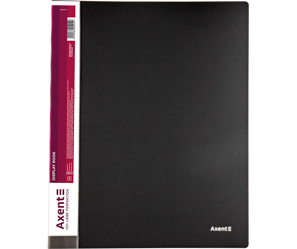 Дисплей-книга 30 файлів, чорна 1020. Дисплей-книги - це чудове рішення для роботи, навчання і організації особистих архівів, підбірок. Помістивши документи з певної теми або проекту в окрему дисплей-книгу, можна не тільки вирішити питання зручної систематизації та зберігання документів, але і при необхідності брати з собою і презентувати їх, просто гортаючи файли в дисплей-книзі. Не потрібно окремо купувати файли і папки, досить вибрати дисплей-книгу з оптимальною кількістю файлів. Дисплей-книги Axent виготовлені з первинного поліпропілену, щільність пластику обкладинки і файлів передбачає їх зносостійкість і збереження презентабельного вигляду в процесі використання. Файли надійно впаяні в обкладинку. Колір обкладинки збігається з корінцем, завдяки чому дисплей-книги відрізняються на полиці, легко знайти потрібну за кольором корінця.