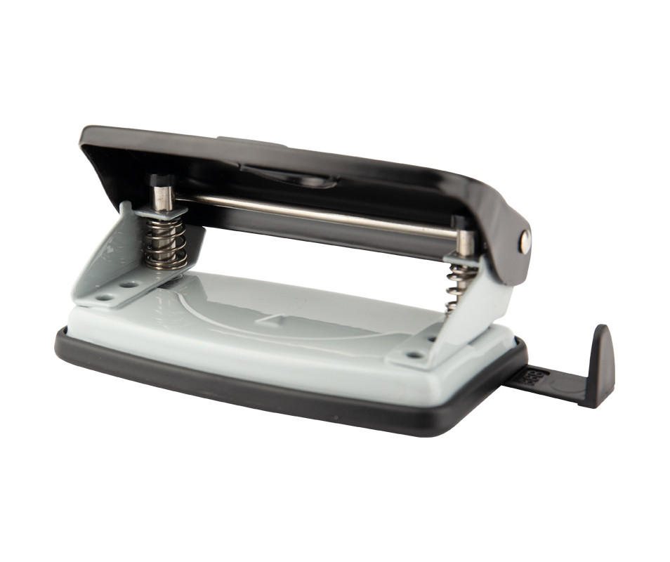 Дырокол Exakt-2 металлический, 10л, черный 1047. Дырокол Exakt-2 принадлежит к металлической серии. Прочный металлический корпус и надежный металлический механизм обеспечивают комфортную работу диропробивателя и его долговечность даже при интенсивной нагрузке. Лезвия долго остаются острыми. Для удобства дырокол оснащен выдвижной ограничительной линейкой с точной шкалой форматов бумаги (А3, А4, А5). Выдвижная линейка необходима для позиционирования листов бумаги, которые вставляются в дырокол, и позволяет всегда получать точный результат и одинаковые кипы подшитых документов с совпадающими отверстиями. Съемный резервуар конфетты открывается мягко. Прорезиненная подошва предотвращает скольжение диропробивателя по поверхности. Диаметр отверстия 6 мм, расстояние между пробитыми отверстиями 80 мм.