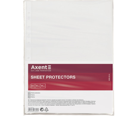 Файл А4, 90 мкм, глянец, Axent, 20 шт, канцтовары Украина, офисные принадлежности, недорогие канцтовары, доставка по Украине, качественные файлы