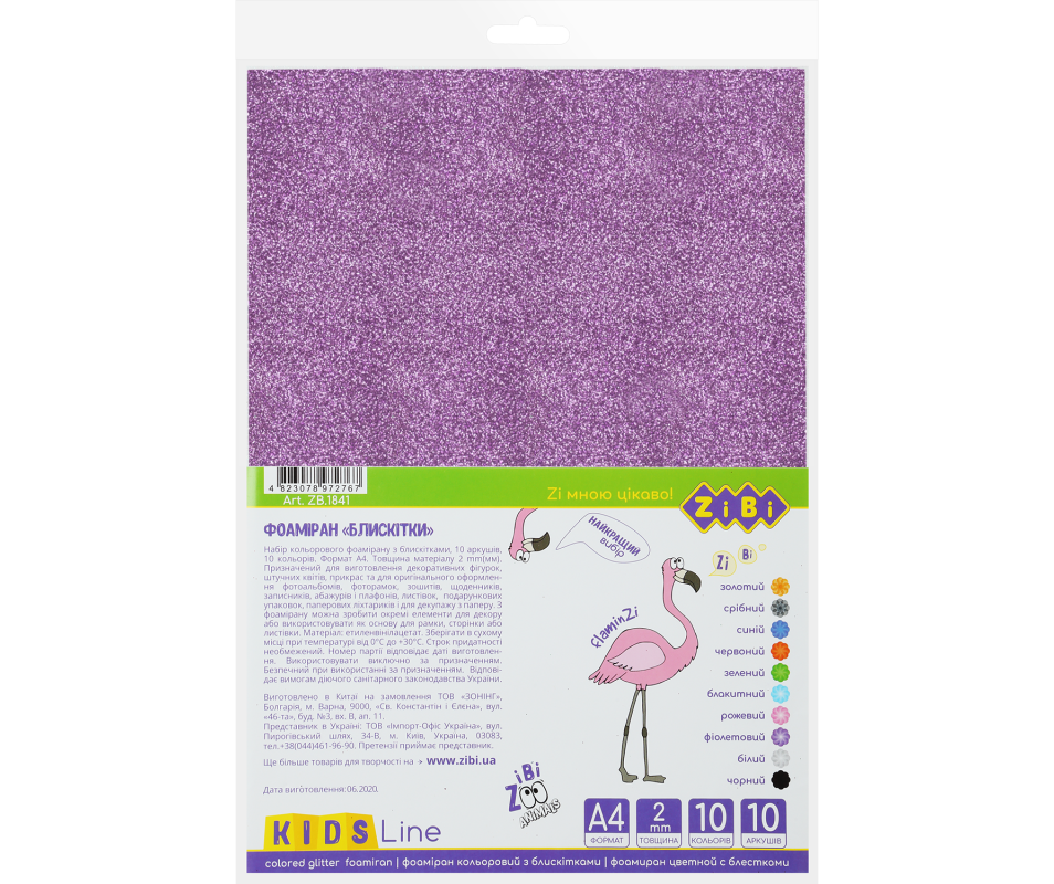 Фоаміран кольор. з блискітками, А4, 10 л. - 10 кол. 2мм, KIDS Line ZB.1841. Фоаміран кольоровий з блискітками, 10 листів, формат А4, 1 лист синій колір, 1 лист зелений колір, 1 лист жовтий колір,1 лист червоний колір, 1 лист білий колір, 1 лист помаранчевого кольору, 1 лист салатового кольору,1 лист блакитного кольору, 1 лист рожевого кольору, 1 лист коричневого кольору, товщина 2 мм, упаковка: пакет з єврозавісом