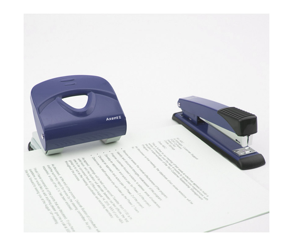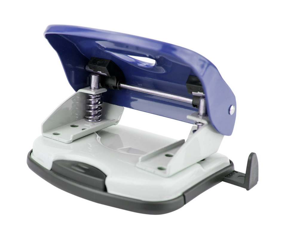 Hole punch Exakt-2 metal, 30 sheets, blue 1051. Hole punch Exakt-2 belongs to the metal series. A strong metal case and a reliable metal mechanism ensure comfortable operation of the hole punch and its durability, even under intense load. Blades stay sharp for a long time. For convenience, the hole punch is equipped with a retractable limiting ruler with an accurate scale of paper formats (A3, A4, A5). The retractable ruler is necessary for positioning the sheets of paper that are inserted into the hole puncher, and allows you to always get an accurate result and the same stacks of bound documents with matching holes. The removable confetti tank opens gently. The rubberized sole prevents the hole punch from sliding on the surface. The diameter of the hole is 6 mm, the distance between the punched holes is 80 mm.