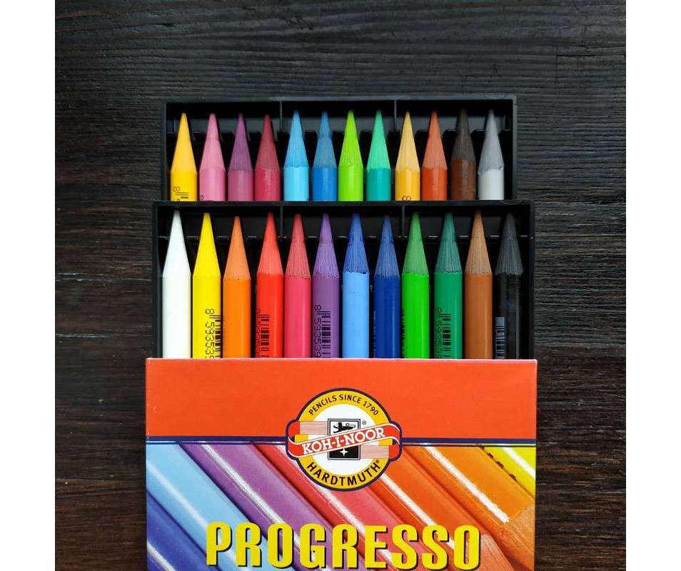 Карандаши цветные бездеревные PROGRESSO, 24 шт. 3028. Художественные бездеревные цветные карандаши в наборах.