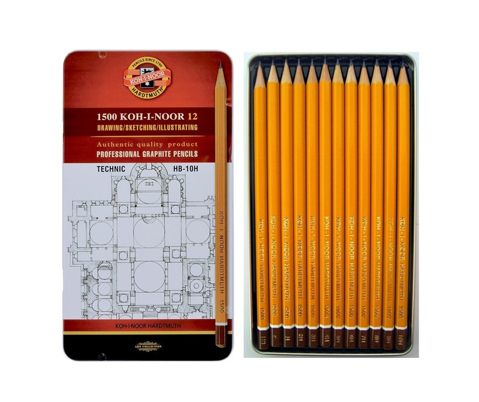 Карандаши графитные 1500 Technic, НВ-10Н, 12 шт. 2919 для технических работ, жесткость НВ-10Н. Набор – 12 графитных карандашей 1500. Металлическая упаковка.