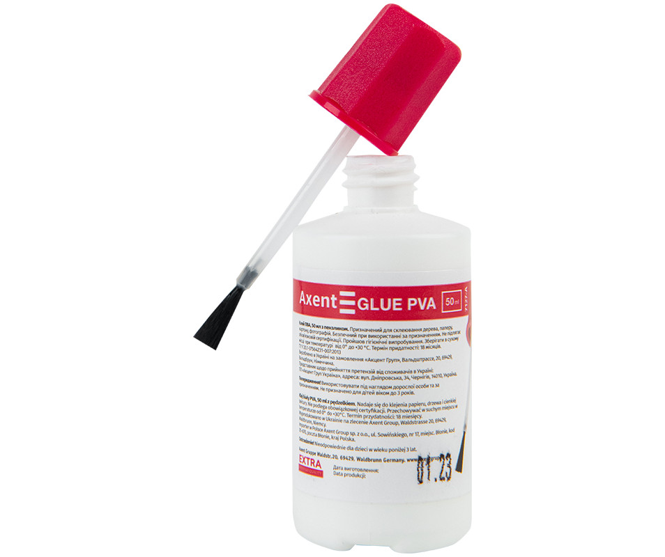 клей ПВА, 50 мл, Extra, з пензликом, канцтовари, офісні товари, шкільне приладдя, доставка по Україні, канцелярія, недорогі канцтовари
