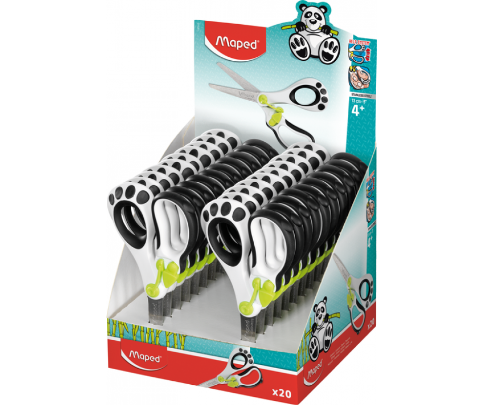 Form KOOPY kids Scissors 130 mm MP.137910 specially designed for comfortable use by children, with the mechanism autowin: much less effort when using, fascinating design, packaging type: box, symmetrical, color: black with green, white and black with purple.