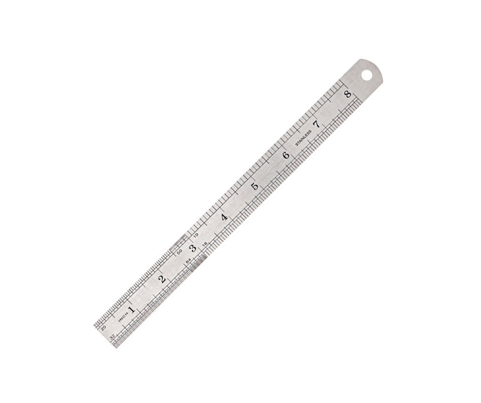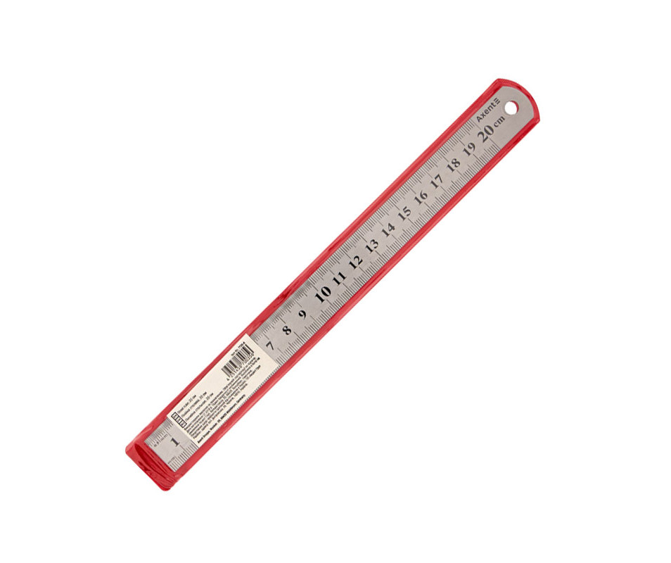 Double-sided ruler 20 cm, made of stainless steel, resistant to deformation. On one side of the ruler there is a 2 centimeter scale, on the other - 2 inches. The ruler is in a PVC case.