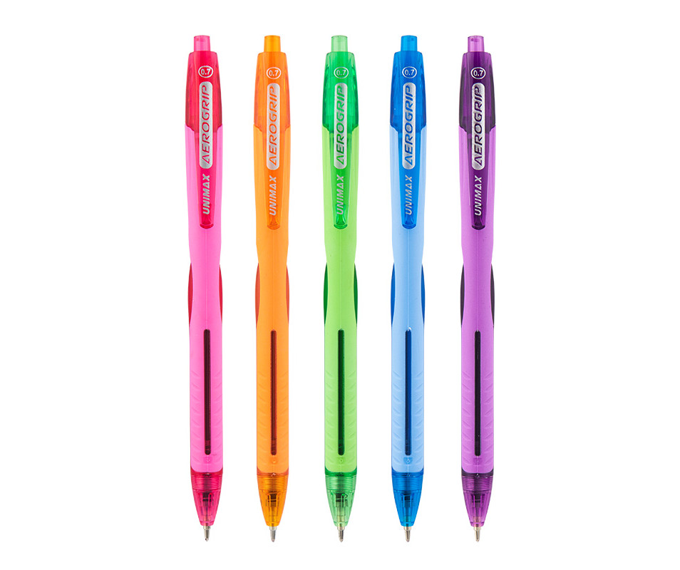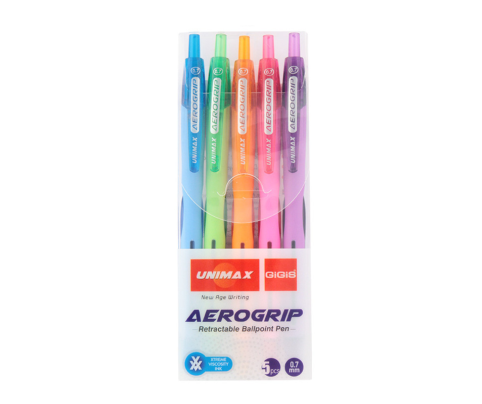Ручка кулькова автоматична Aerogrip-3 є ідеальним інструментом для тих, хто цінує комфорт і стиль в письмі. Цей набір, що складається з п'яти кольорів, вражає не лише естетикою, а й функціональністю. Дизайн ручки забезпечує зручний захват завдяки ергономічній формі, що дозволяє тривало писати без відчуття втоми.