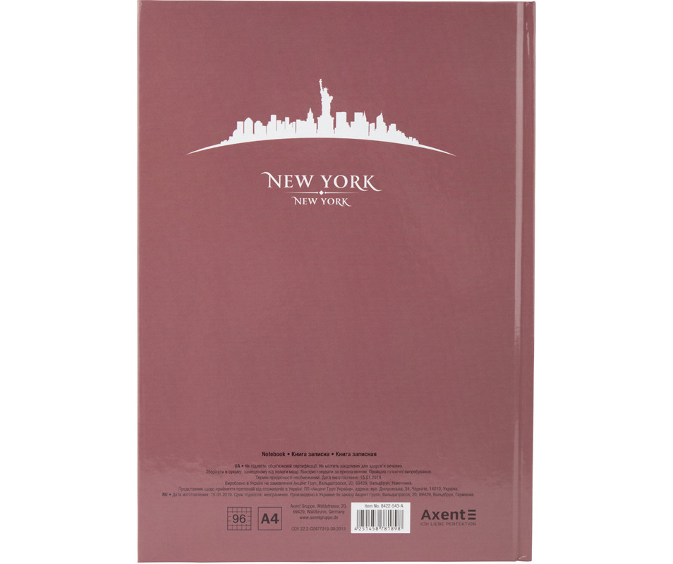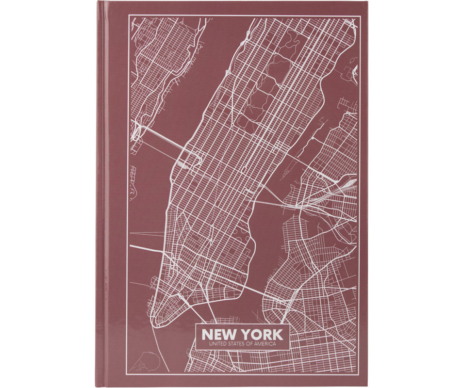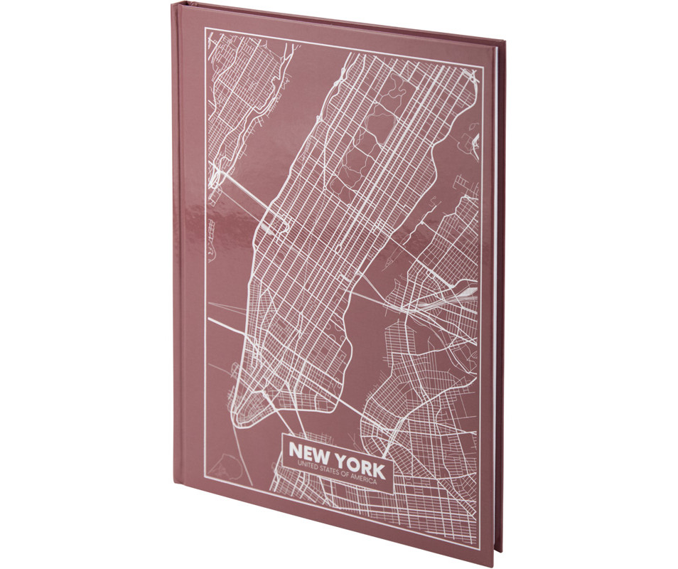 The Axent "Maps" New York 8422-543-A notebook is designed for daily note-taking, keeping track of information, creating diagrams, charts, and capturing a large volume of information. It features a sturdy binding and a dense cardboard cover that ensures it maintains a neat appearance throughout its use.