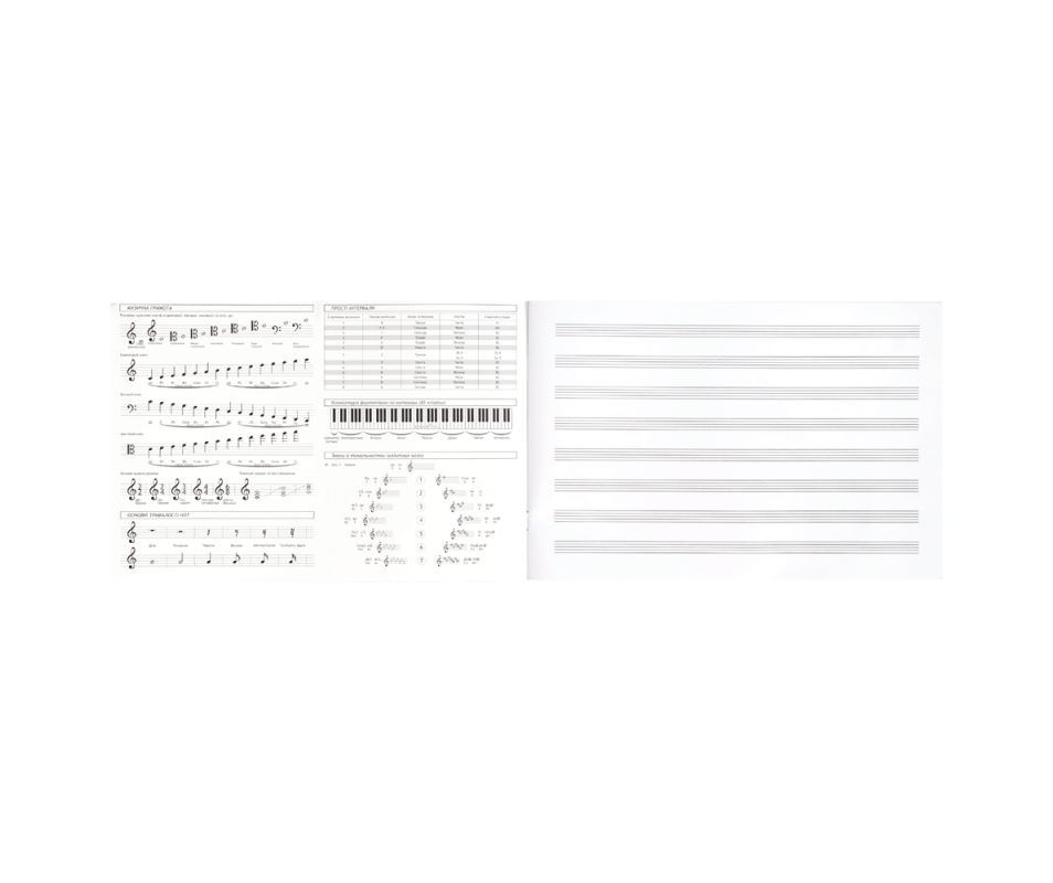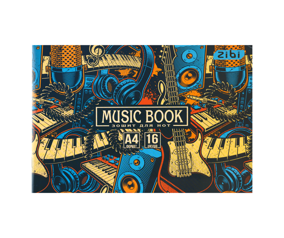 Notebook for notes 16 sheets, bracket, horizontal mounting.1096. Notebook for notes with a bold, colorful cover of a musical theme. Full color cardboard cover 230g/m2 2 design.