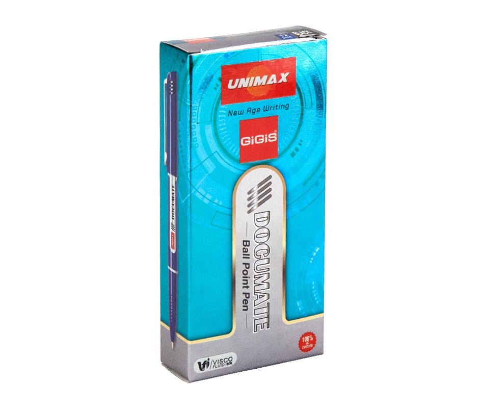 Особливостю ручки є чорнила Visco Fluid Ink – іноваційна розробка, що забезпечує суперм’яке письмо та насичені й яскраві лінії. Ручка має збільшений запас чорнила. Масляне чорнило кулькової ручки “Unimax“ Documate має підвищену в’язкість, завдяки чому накреслені лінії виходять акуратними, письмо - неймовірно гладким, а довжина письма - набагато більша у порівнянні зі звичайними масляними ручками.