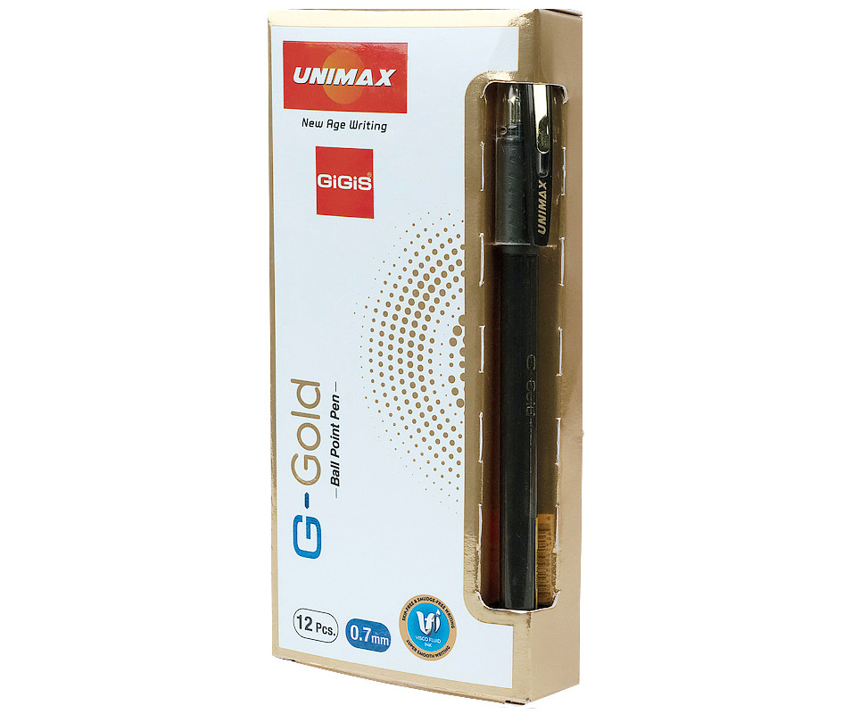 Особливостю ручки є чорнила Visco Fluid Ink – іноваційна розробка, що забезпечує суперм’яке письмо та насичені й яскраві лінії. Ручка має збільшений запас чорнила. Масляне чорнило кулькової ручки “Unimax“ FINE POINT GOLD DLX має підвищену в’язкість, завдяки чому накреслені лінії виходять акуратними, письмо - неймовірно гладким, а довжина письма - набагато більша у порівнянні зі звичайними масляними ручками.