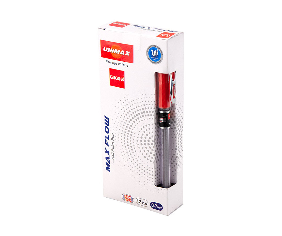 Особливостю ручки є чорнила Visco Fluid Ink – іноваційна розробка, що забезпечує суперм’яке письмо та насичені й яскраві лінії. Ручка має збільшений запас чорнила. Масляне чорнило кулькової ручки “Unimax“ MAXFLOW має підвищену в’язкість, завдяки чому накреслені лінії виходять акуратними, письмо - неймовірно гладким, а довжина письма - набагато більша у порівнянні зі звичайними масляними ручками.