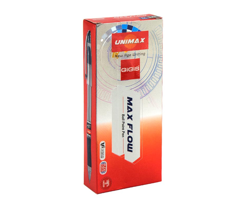 Особливостю ручки є чорнила Visco Fluid Ink – іноваційна розробка, що забезпечує суперм’яке письмо та насичені й яскраві лінії. Ручка має збільшений запас чорнила. Масляне чорнило кулькової ручки “Unimax“ MAXFLOW має підвищену в’язкість, завдяки чому накреслені лінії виходять акуратними, письмо - неймовірно гладким, а довжина письма - набагато більша у порівнянні зі звичайними масляними ручками.