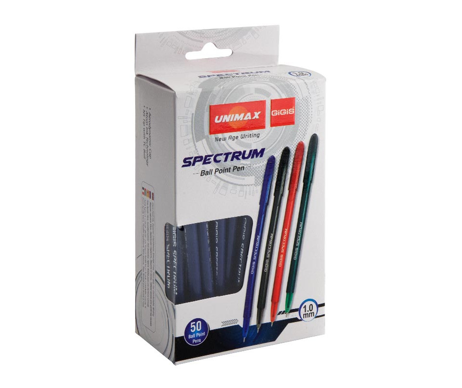 Кулькова ручка “Unimax“ Spectrum у пластиковому корпусі з металевим кінцевиком. Вентильований ковпачок з кліпсою. Лаконичний дизайн. Колір корпусу відповідає кольору чорнила.