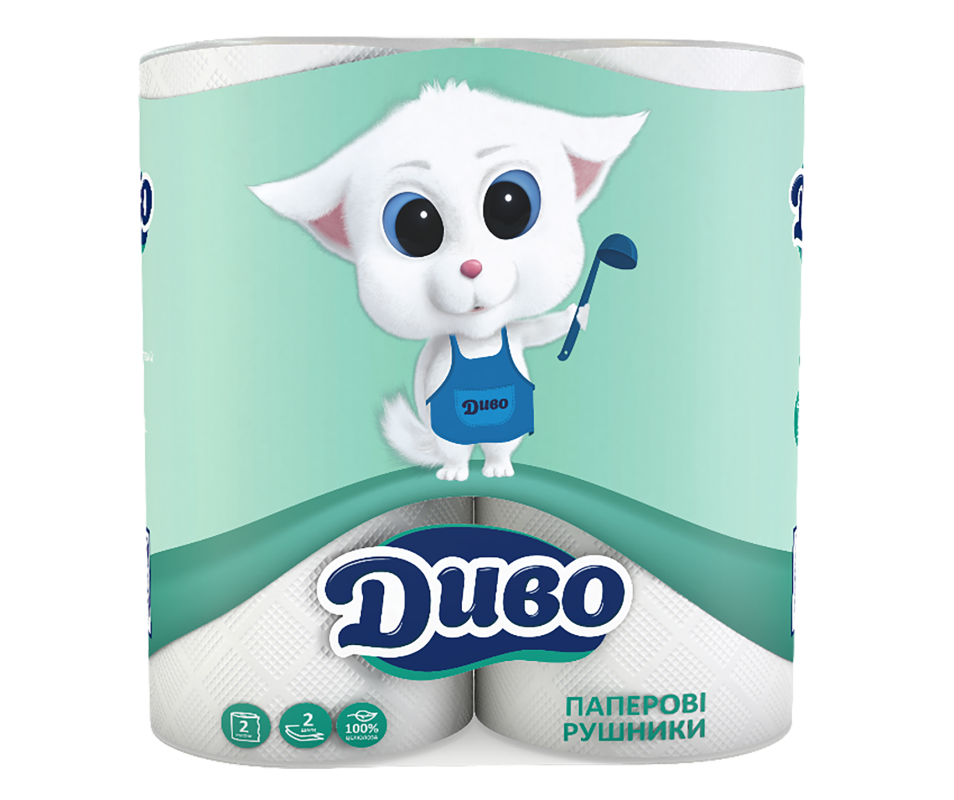 Рушники паперові, Диво рушники, 2-х шарові рушники, паперові рушники 2 рул., гільза для рушників, білий паперовий рушник, рушники для кухні, одноразові рушники, екологічні рушники, домашнє використання рушників