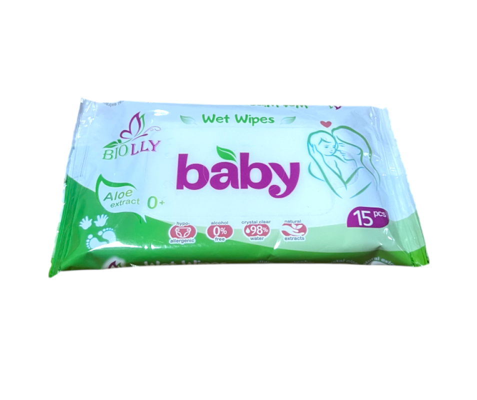 Introducing BIOLLY Antibacterial Wet Pocket Wipes, a convenient pack of 15 wipes designed for on-the-go hygiene and cleanliness. Formulated with effective antibacterial agents, these wipes provide a quick and efficient solution for sanitizing hands and surfaces, making them ideal for travel, outdoor activities, or everyday use. The compact packaging ensures easy portability, fitting seamlessly into bags or pockets. Each wipe is crafted to deliver a gentle yet thorough cleanse without harsh chemicals, suitable for all skin types. Trust BIOLLY for reliable protection against germs, promoting health and safety wherever you are.